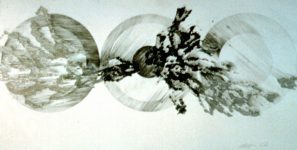 2008년 <삶의 흔적(The Stains of Life), 2008>의 전시 서문에 미학박사 양효실이 언급한 것과 마찬가지로 내 작품의 주요한 단서로 작용하는 ‘원’은 어느 하나로 명료하게 평가될 수 없는 모호함을 지니고 있다. 하지만 그럼에도 불구하고, 1991년에 발표한 세 작품에 등장하는 원과 그 구성에는 두 가지의 큰 공통점이 발견된다. 작품에서 1차적으로 발견할 수 있는 두 층위, (a)구리 안료 등이 형성하는 층위가 (b)콩테, 흑연, 백묵 등으로 표현한 원의 층위를 뒤덮고 있다는 것. 그리고 상승 또는 하강의 이미지를 그리고 있는 (a)를 (b)가 역으로 진행하는 모습을 띄고 있는 것이다.