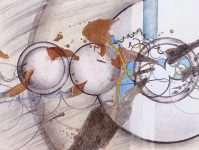 6월 서울의 인데코화랑에서 개최하였던 전시는 재료의 확장으로 가능해진 색다른 경험들을 관객과 공유했다. 컴퓨터그래픽으로 탄생한 생소하고 낯선 가상의 공간이 캔버스 위의 드로잉과 결합 또는 충돌하면서 만들어낸 화면은 작품에 확실한‘공간감’과‘율동감’을 더하고 있었다. 그리고 이‘공간감’과‘율동감’은 종적으로 나열되고 축적된 흔적, 시간의 흐름에 비례할 수 밖에 없던 화면의 층위들을 무너뜨렸다. 대신, 가늠 불가능해진 화면의 깊이는 횡적 사고의 지평을 열어주었다. 그야말로‘안팎으로 열린 원’이 발원한 것이다.