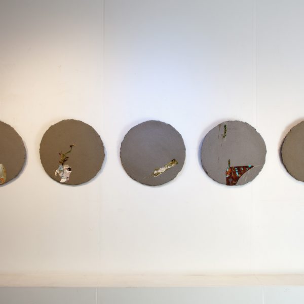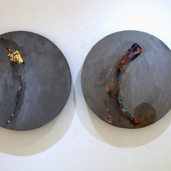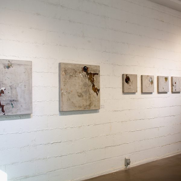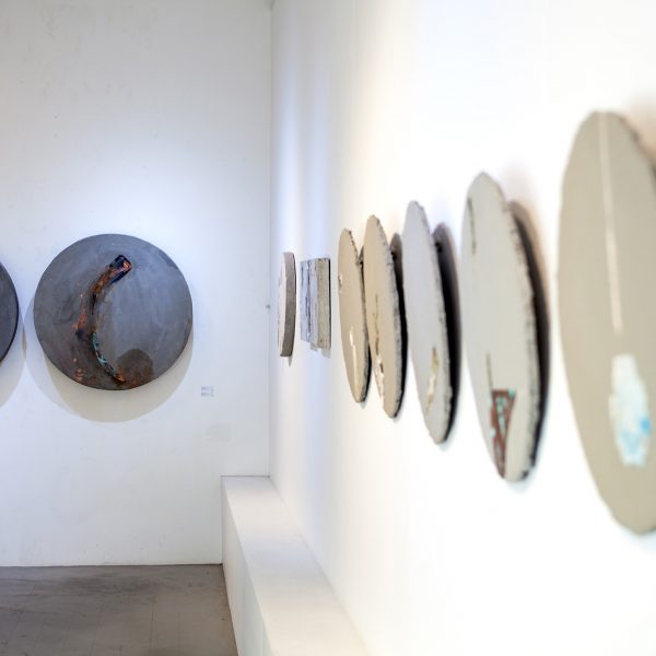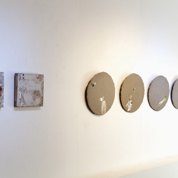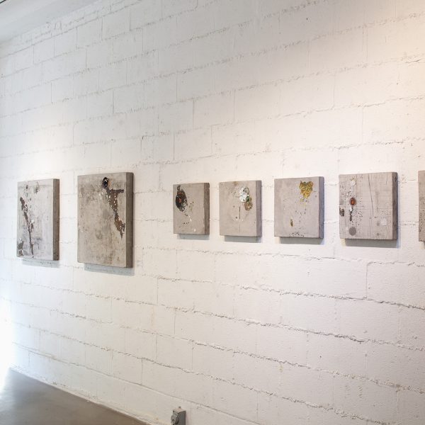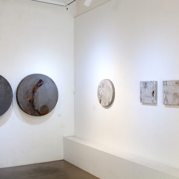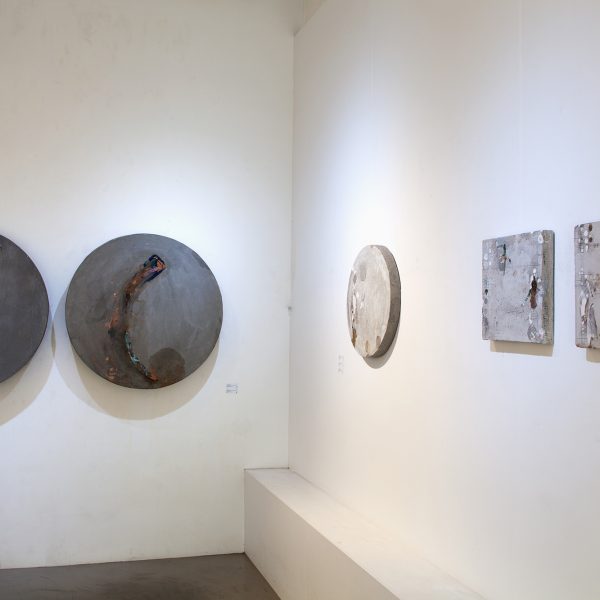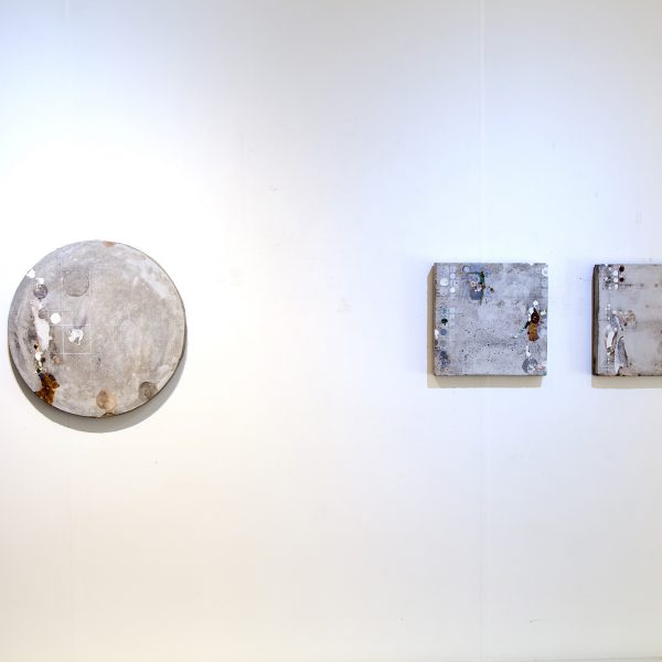 한편, 그녀의 근작들에서 발견되는 것은 시멘트와 같은 현대 문명사회의 상징이자 부산물들-흑연, 구리, 쇳가루, 녹청, 금박-이다. 2008년부터 작가가 진행해온 시리즈의 연장선에서 새로운 작품들은, 가치가 없어 버려진 것들을 일련의 과정을 통해 화면 위에 의미 있는 존재로 재탄생 시키는 ‘조기주식 연금술’을 더욱 다양하고 친숙한 재료들을 활용함으로 그 지평을 확장시킨다. 특히, 이미 2014년 이래 두 차례의 변화를 겪은 그녀의 시멘트 화면은 패널 내부에 매립된 철망이 전면에 드러나 생긴 그리드(grid)를 그대로 품으며 또 다른 변화를 도모하고 있다. 이는 자연스럽게 그 위의 흔적들과 어울리며 운동하고, 확장하여 생성하는 화면을 연출한다.